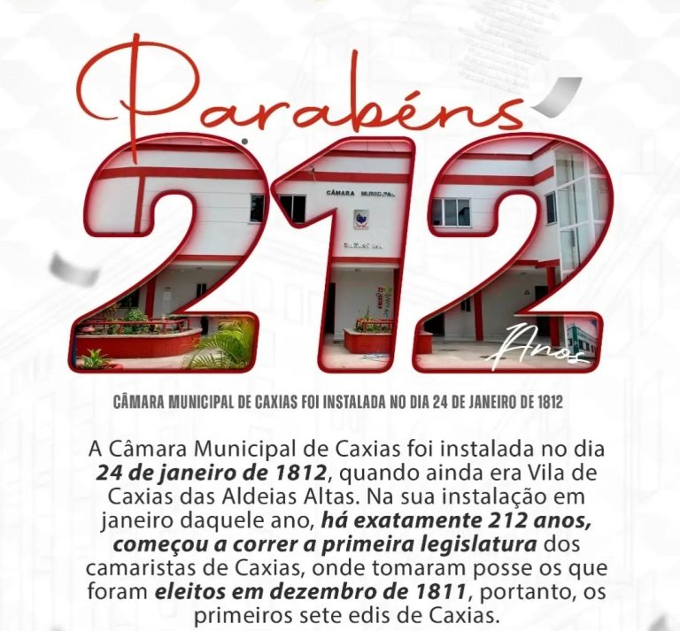 A Câmara Municipal de Caxias foi instalada no dia 24 de janeiro de 1812, quando ainda era Vila de Caxias das Aldeias Altas. Na sua instalação em janeiro daquele ano, há exatamente 212 anos, começou a correr a primeira legislatura dos camaristas de Caxias, onde tomaram posse os que foram eleitos em dezembro de 1811, portanto, os primeiros sete edis de Caxias.