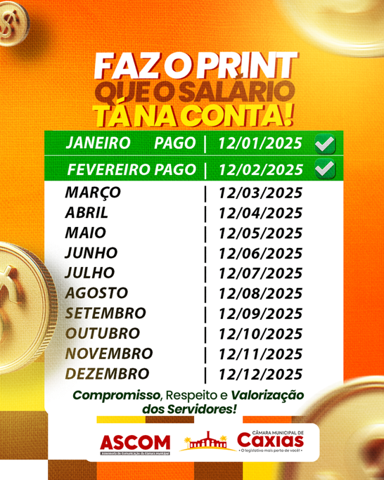 A atual gestão da Câmara Municipal de Caxias, reafirmou seu compromisso com a valorização dos servidores públicos ao divulgar, de forma antecipada, o calendário anual de pagamentos para 2025. A iniciativa visa garantir maior previsibilidade financeira aos funcionários, permitindo que eles possam se organizar e cumprir com suas obrigações financeiras de maneira mais tranquila e eficiente.