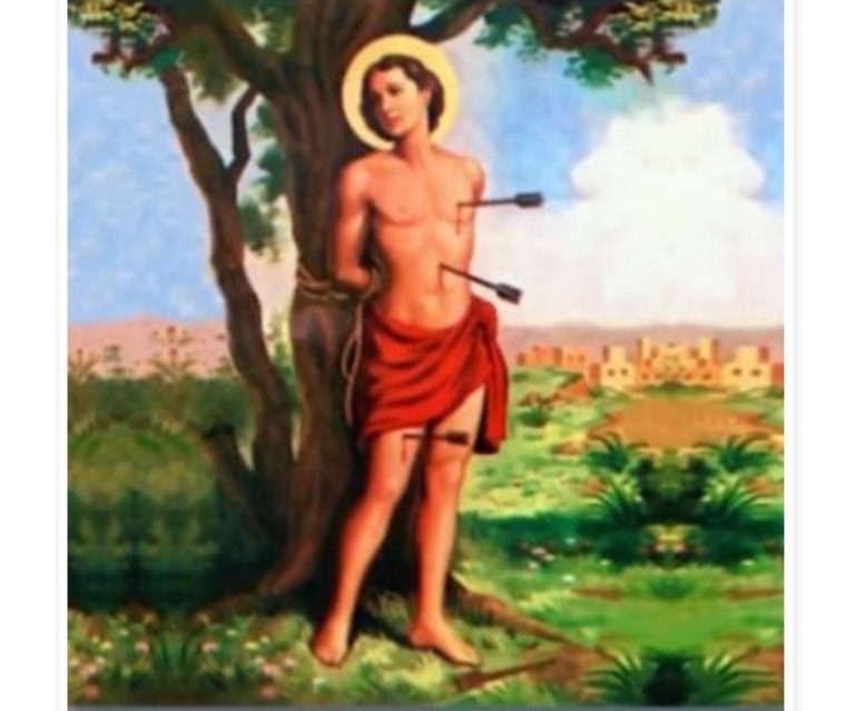 São Sebastião, um dos soldados romanos convertidos ao cristianismo no século 4º, é lembrado por sua coragem diante da perseguição e seu testemunho de fé. Condenado à morte e alvo de flechas, ele sobreviveu, continuando sua obra de pregação até sua morte posterior.
